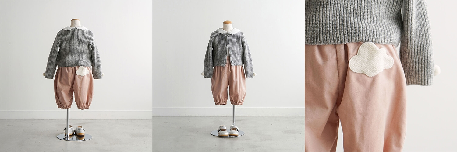 Balloon pants with a fluffy cloud-shaped pocket on the bottom.