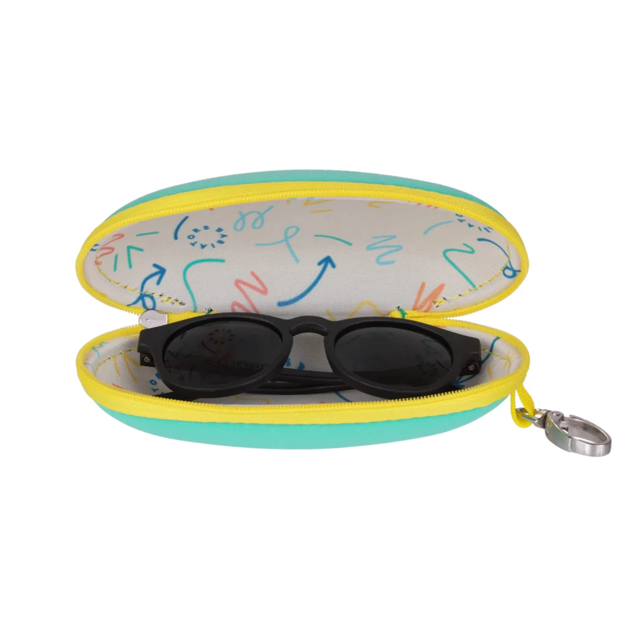 Keep your Babiators safe from wear and tear between adventures with our Travel Case! Made for families on the go, this neoprene fabric case can be clipped onto your diaper bag or stroller for easy reaching when they need their shades. Plus, it’s ultra-durable, easy to clean, and of course, adorable.Â