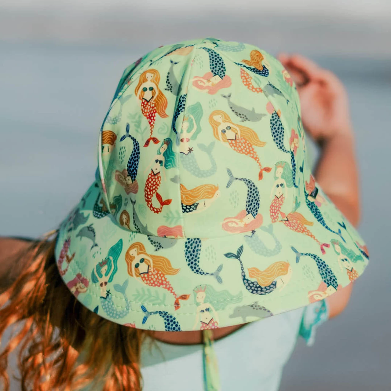 The Bedhead Ponytail Bucket hat is a UPF50+ kids sun hat featuring our unique ‘anti-flop’ technology ensuring brims won’t flop in front of their eyes! Our girls Bucket Hats feature a clever little ponytail slit to keep hot hair off little necks! Made with super-stretchy and lightweight cotton jersey that keeps kids heads cool under the hot Australian conditions with UPF50+ excellent protection.