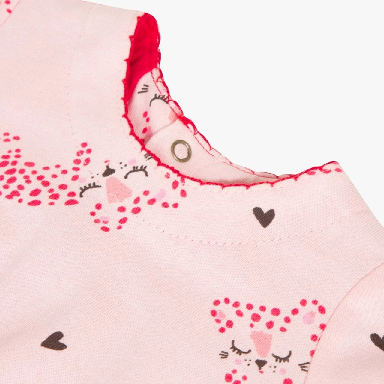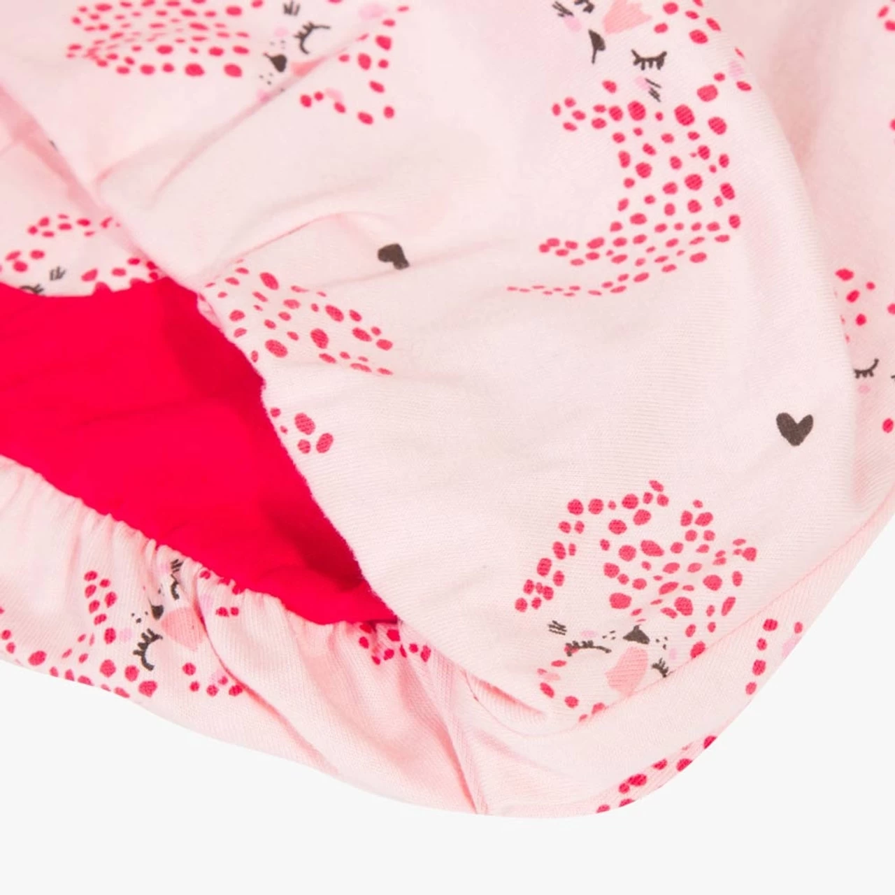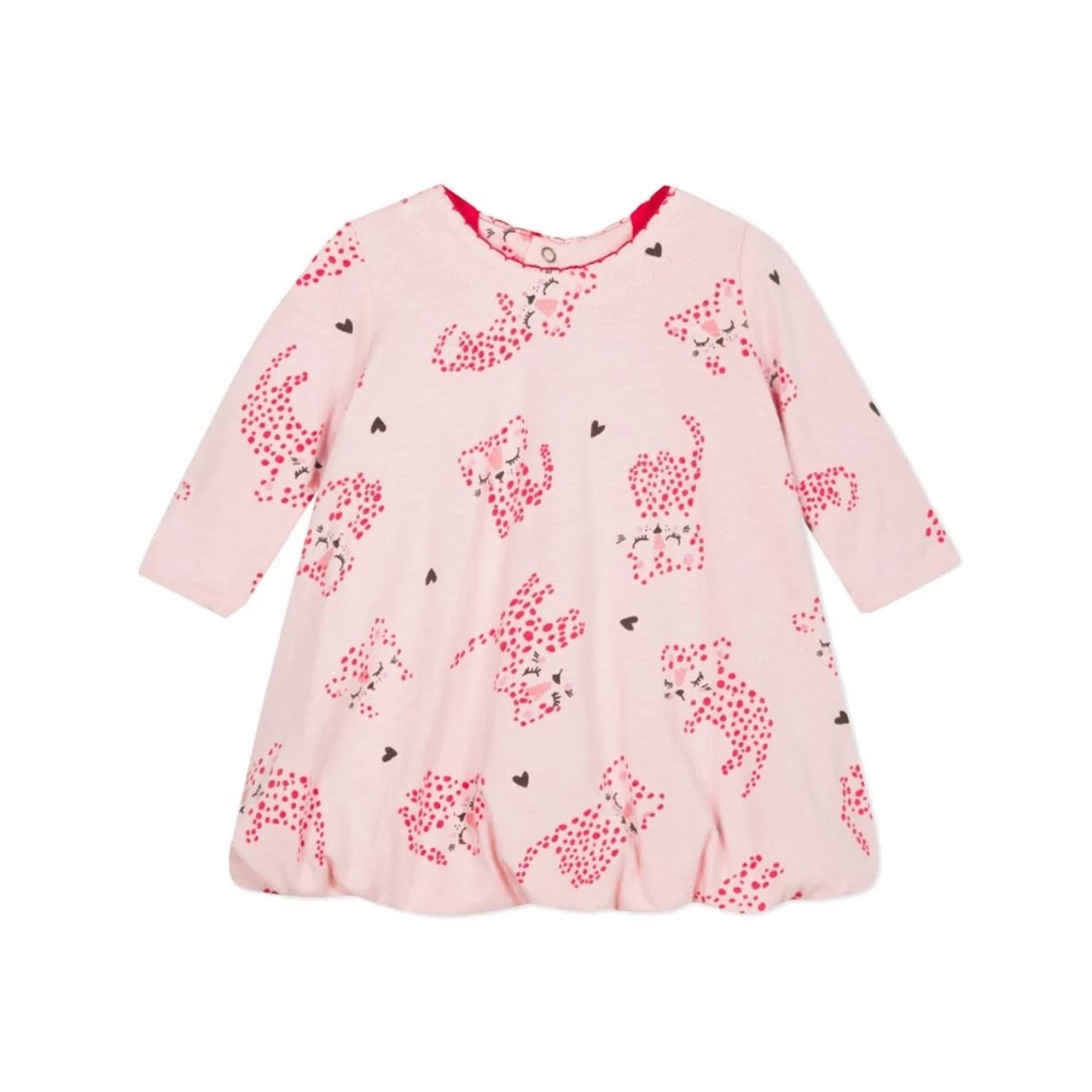 Bubble hem Dress, a flagship garment from Catamini’s newborn range! A long-sleeve Dress that is incredibly soft and round. In petal pink Jersey, it features small panthers with polka dots, for a sweet and arty silhouette. Croquet finish round neckline with practical press studs at the back. Elasticated bubble shaped hemline. Lined with a soft Jersey. Catamini signature logo.