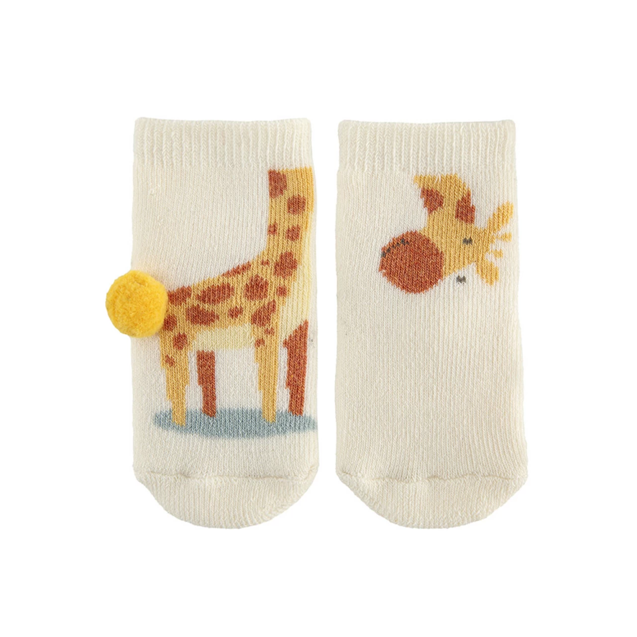Giraffe non-slip baby terry socks with pompom. Sizes from newborn until 4 years.