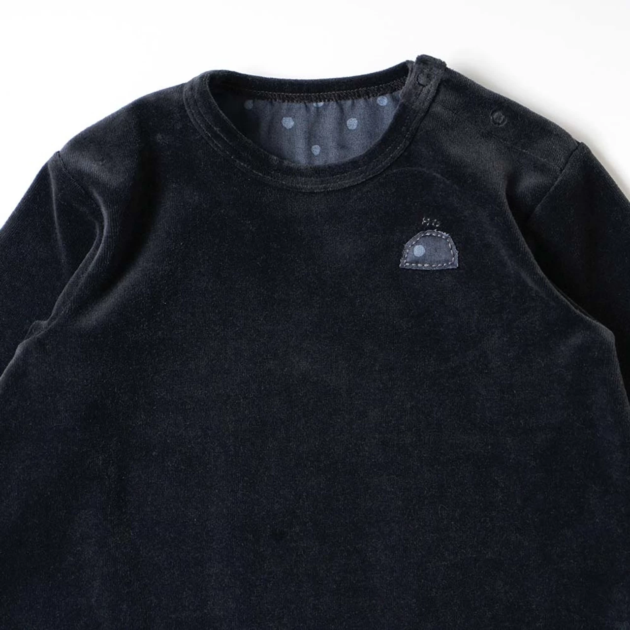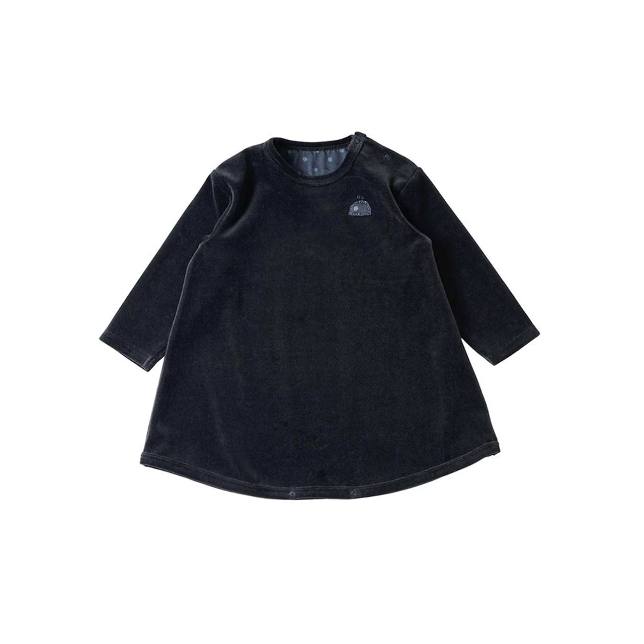 Wearing a snap button on the crotch makes it a romper. Hommage’s classic long T-shirt that can be worn in an A-line T-shirt or one-piece style by removing the button.