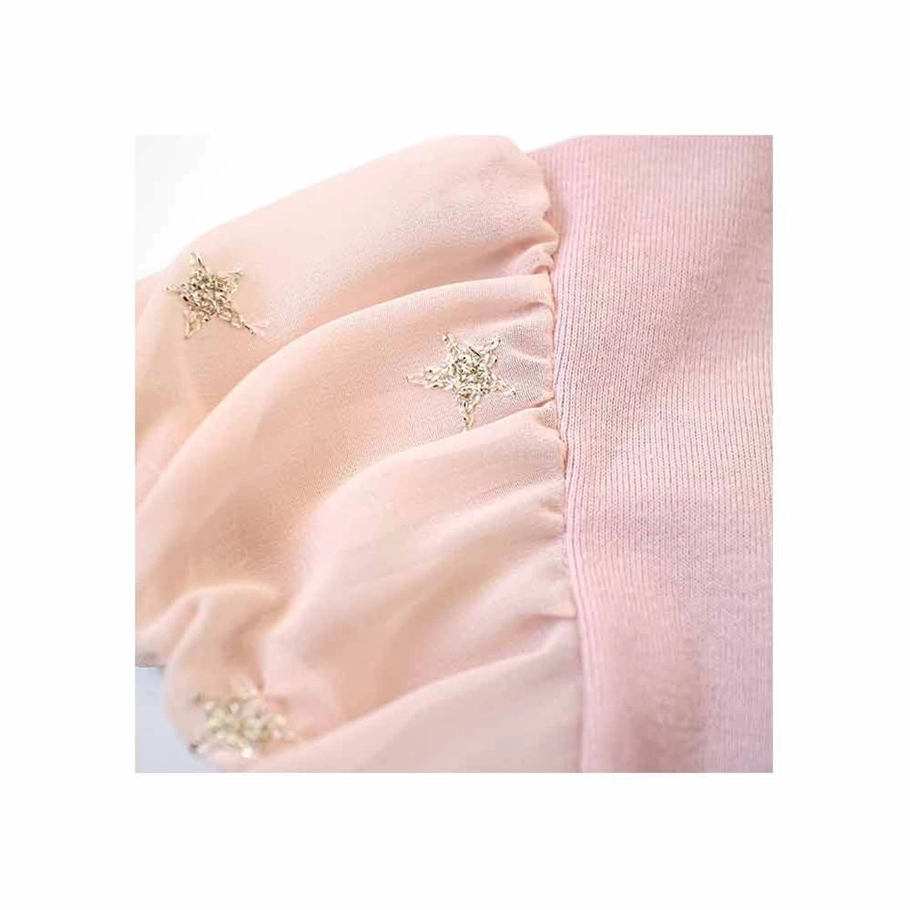 Light chiffon sleeve points. Star embroidery is given.