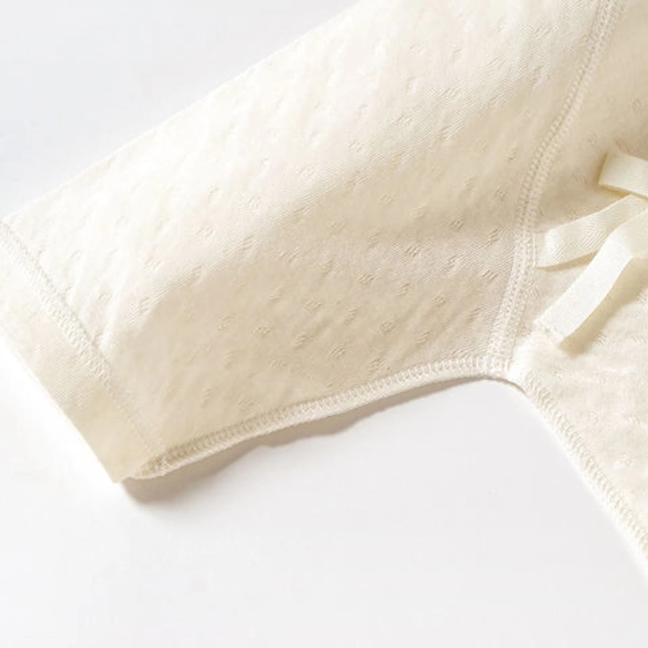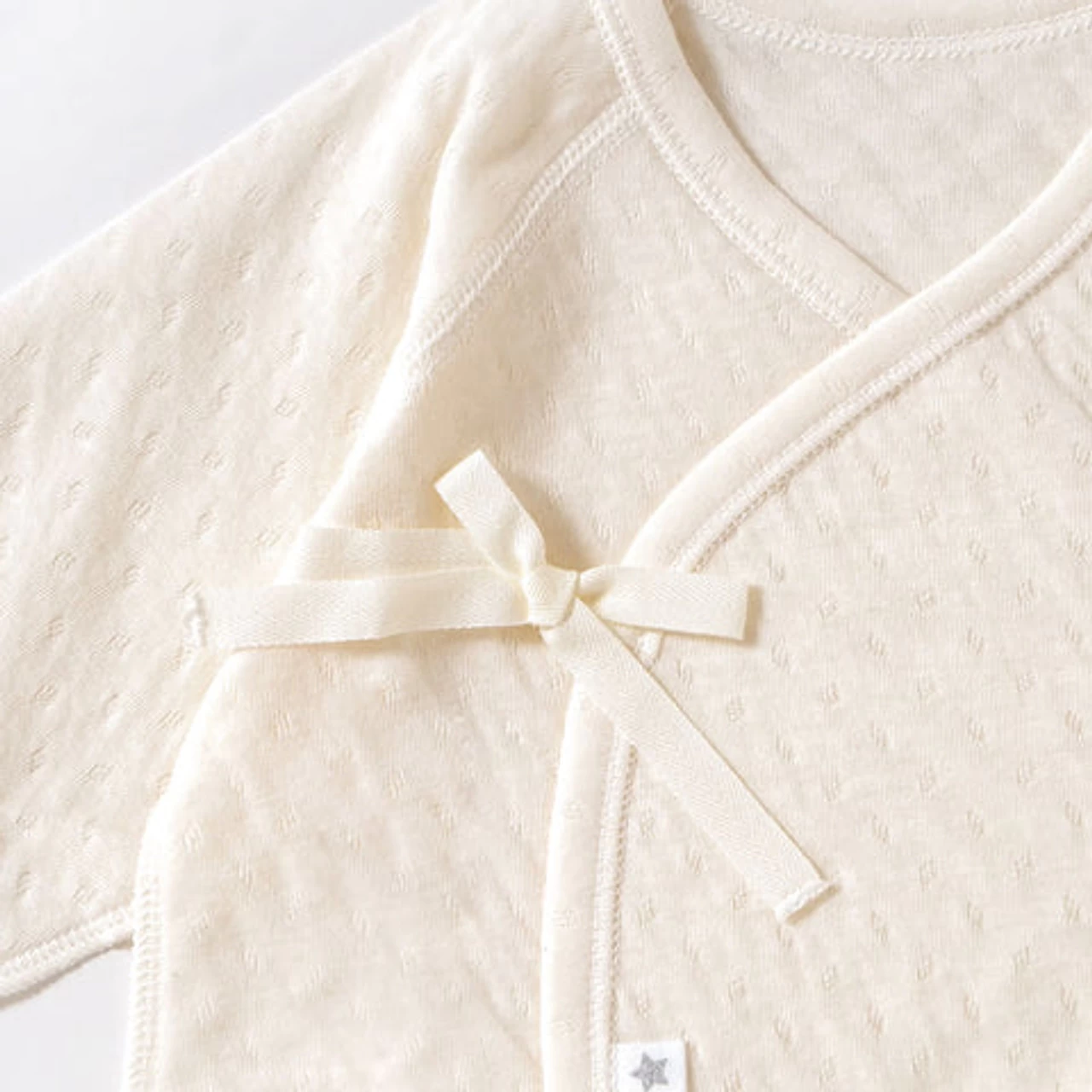 Snap buttons on the hem make it easy to change diapers even when your little one is active. The seams are sewn so that they do not touch the skin directly, the cord specifications make it easy to adjust the size, and the material is comfortable to wear.