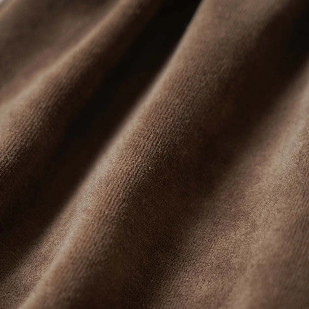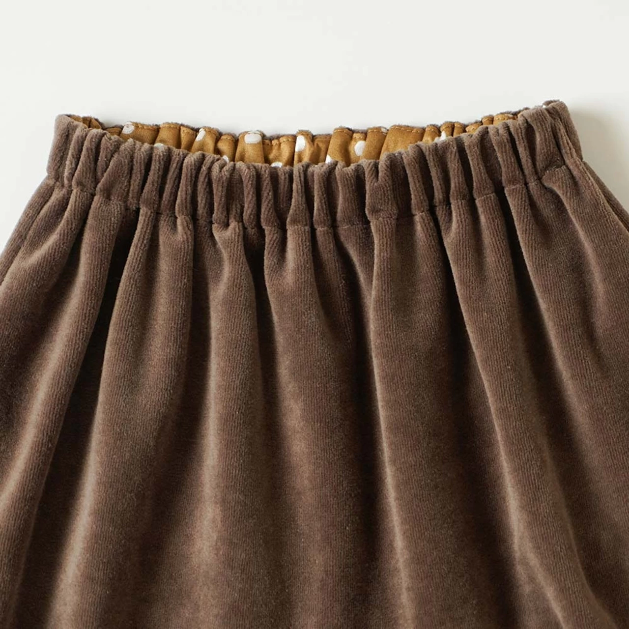It is a glossy and soft velor material. You can enjoy coordination by layering with leggings and tights.