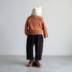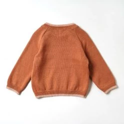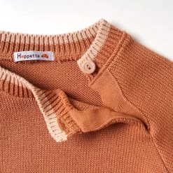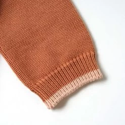 The color scheme knit pullover knitted with this feather cotton thread is available in two colors, the trendy terracotta and mustard.