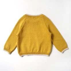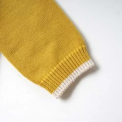 The color scheme knit pullover knitted with this feather cotton thread is available in two colors, the trendy terracotta and mustard.