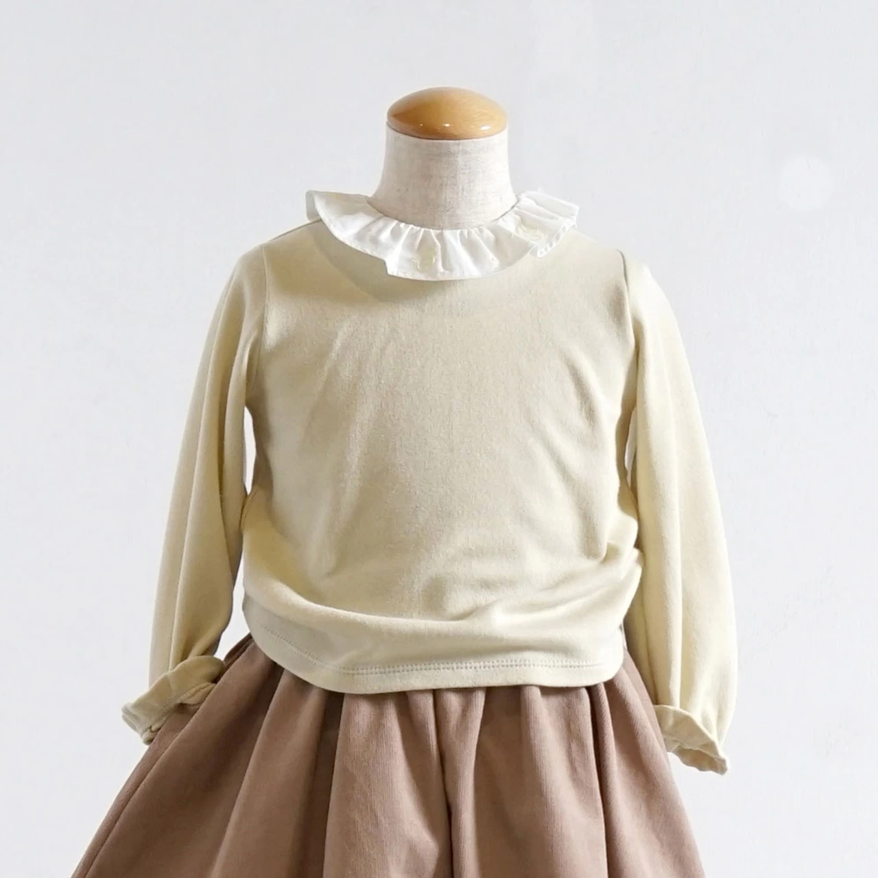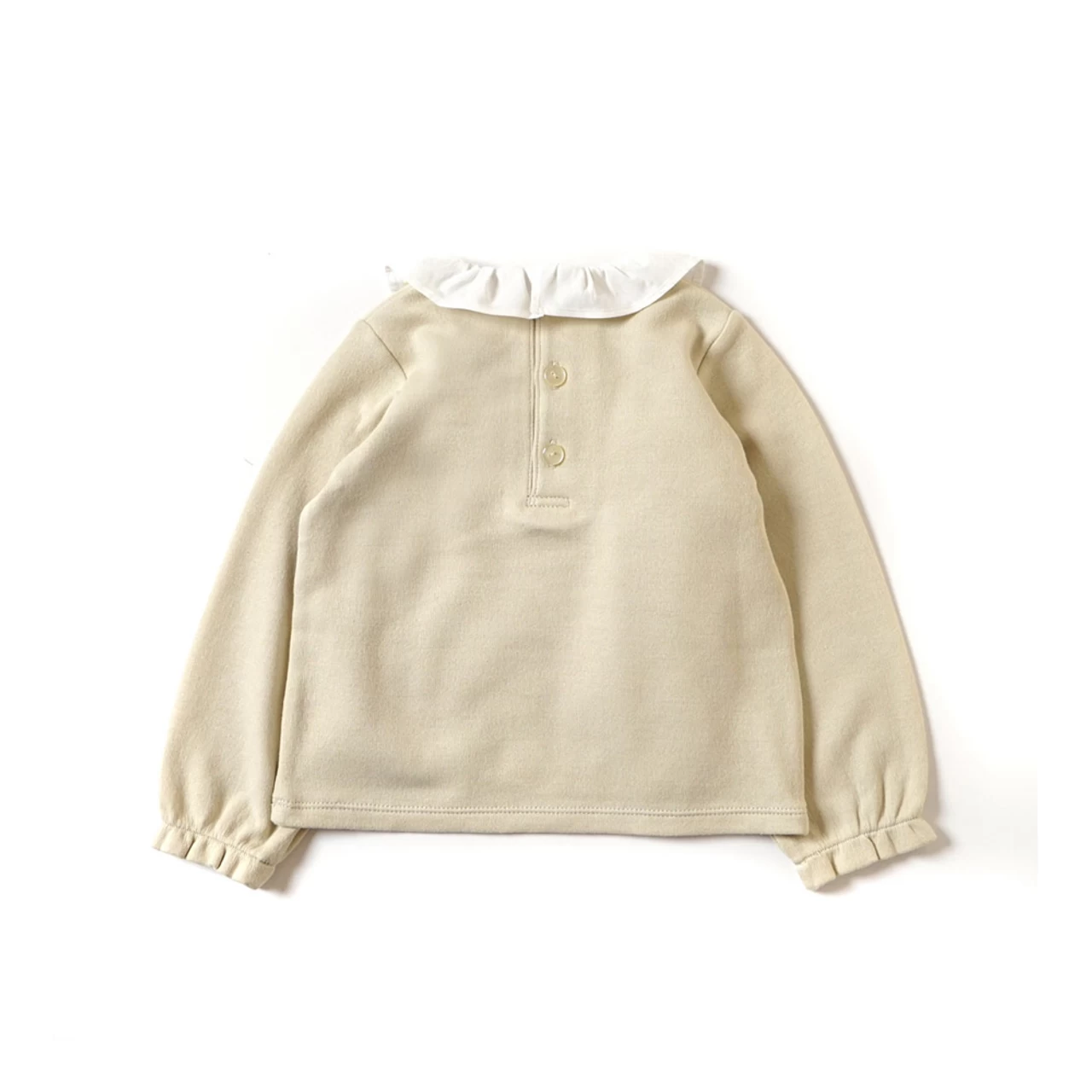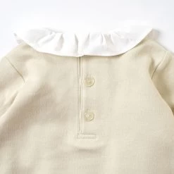 The organic cotton fabric that maximizes the swelling with a special structure called air knit is soft and soft to the touch, making it an excellent piece of comfort. The frilled collar around the neck is embroidered with flying birds. It is an item that is easy to use as a single piece or as an inner.