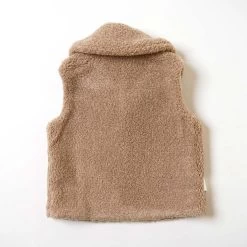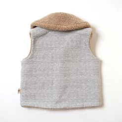 A reversible vest that combines a sheep-like boa fabric and a jacquard fabric.