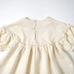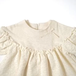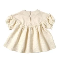 A tunic pullover that combines a jacquard fabric with a flower pattern in the openwork on a rough cut in a bright color. The puff sleeves have a girlish volume and are finished in a fluffy A-line silhouette. The point is the same color ribbon on the chest. It is a natural and feminine piece.