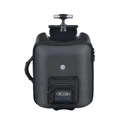 The hard case has a soft front panel which can be unzipped to access the 18 liter storage compartment. Five pockets plus a padded tablet compartment keep your belongings organized and protected. To stow in an overhead airplane compartment, simply fold up the back wheels.