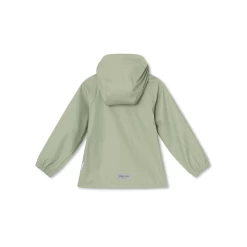 Classic rain jacket from MINI A TURE. The removable hood, which is buttoned with push buttons, has a practical and smart wide shade to protect against wind and rain. The front pockets are opened with push buttons, just as the wind post in front of the zipper can be closed with push buttons.