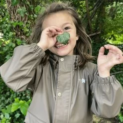 Classic rain jacket from MINI A TURE. The removable hood, which is buttoned with push buttons, has a practical and smart wide shade to protect against wind and rain. The front pockets are opened with push buttons, just as the wind post in front of the zipper can be closed with push buttons.