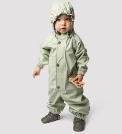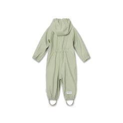 Unisex spring suit for babies and toddlers in a soft quality. The suit has a detachable hood with snap buttons, detachable foot straps and a fixed elastic at the back for better fitting.