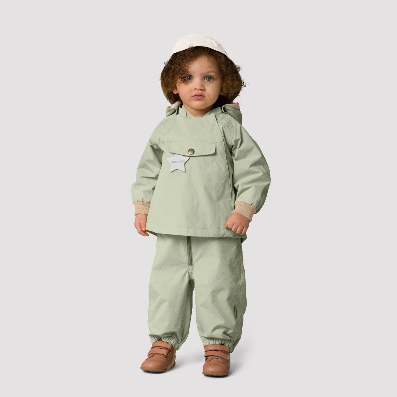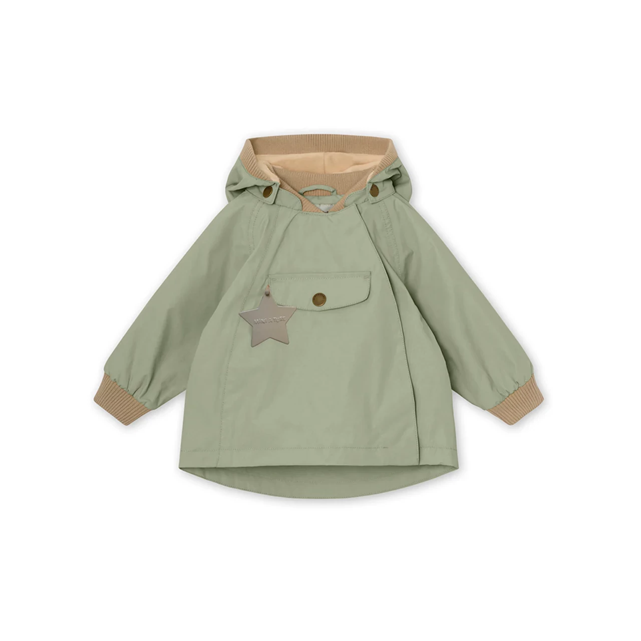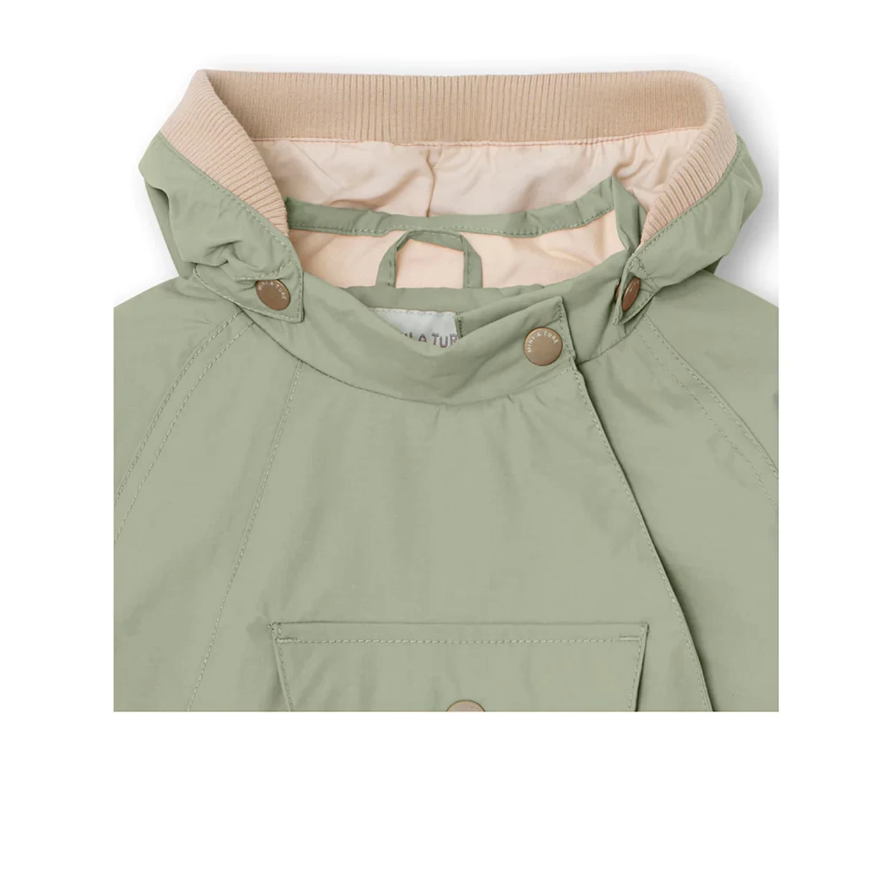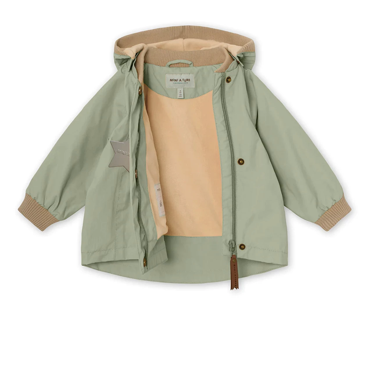 Wai Jacket for the little ones. This unisex jacket has a recognizable pointed hood, an oversized front pocket and a zipper on the left-front side. It has an adjustable waistline to ensure a better fitting. The hood is attached with snapbuttons and can also get detached. Note that sizes up to 86cm (18m) feature a ribber colar, while sizes above 86cm have a regular collar. The jacket is available with or without fleece lining. MINI A TURE’s signature reflex is placed in the pocket and a small reflex logo at the back.