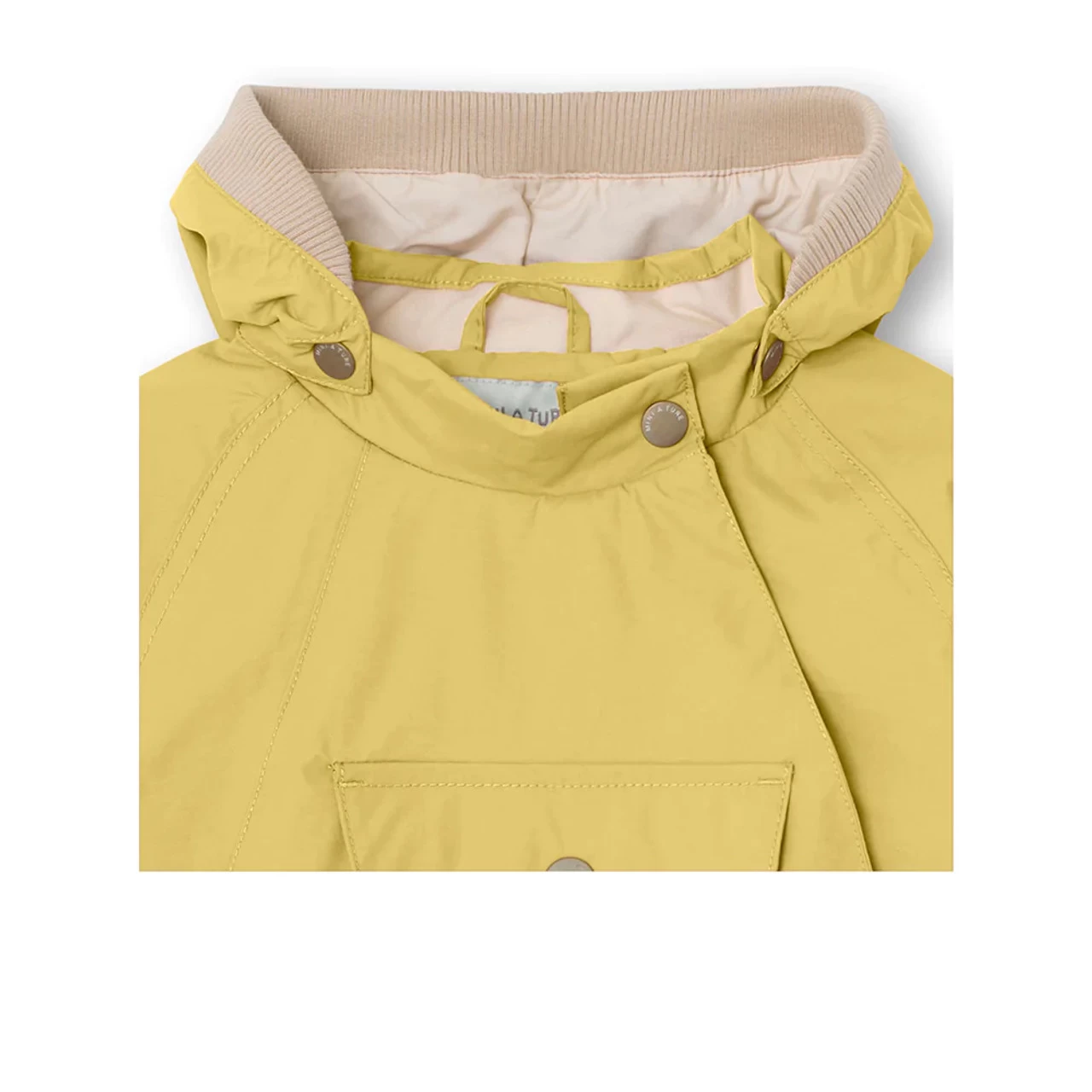 Wai Jacket for the little ones. This unisex jacket has a recognizable pointed hood, an oversized front pocket and a zipper on the left-front side. It has an adjustable waistline to ensure a better fitting. The hood is attached with snapbuttons and can also get detached. Note that sizes up to 86cm (18m) feature a ribber colar, while sizes above 86cm have a regular collar. The jacket is available with or without fleece lining. MINI A TURE’s signature reflex is placed in the pocket and a small reflex logo at the back.