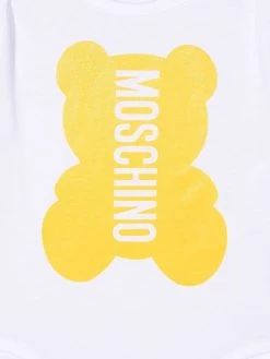 Moschino’s signature Teddy Bear motif has been in circulation since the brand’s iconic 1988 collection. In soft cotton, this pair of short-sleeve bodies feature the signature branding in a white and yellow hue.