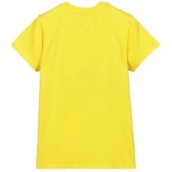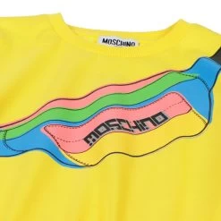 Yellow cotton jersey T-shirt for teen boys by Moschino Kid-Teen, in a regular slim fit. It is all about having a good time, with this belt bag logo print in cheery colours.