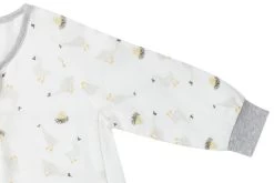 This footed sleep bag has a 2-way zip and button snaps make diaper changes quick and easy. The stretchy side panels allow your bubs to move with ease, whether in or out of bed. Our footed sleep bags are a favourite for toddlers on-the-move and perfect for the transition between a sleep sack and using a big kid blanket. This footed sleep bag comes in our The Goose & The Golden Egg print, a part of our SS23 Aesop’s Fables collection.