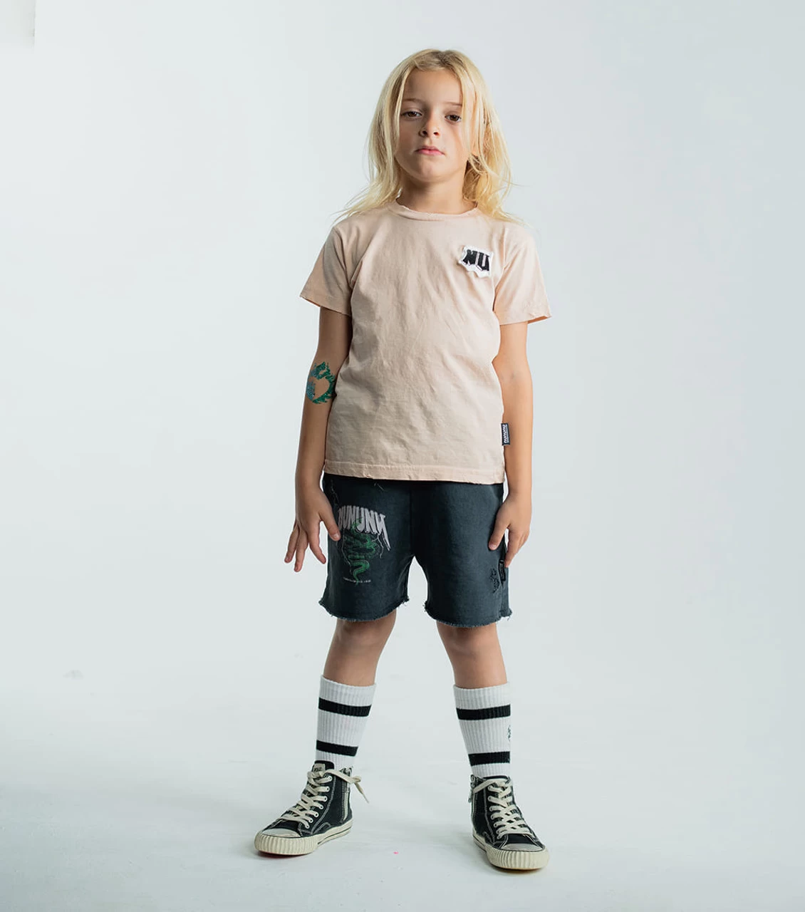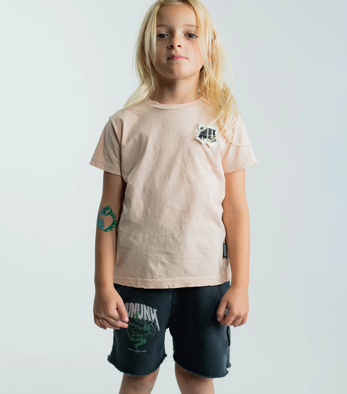 The perfect nude unisex t-shirt crashes into summer ‘23. With a slightly relaxed fit in soft-as-hell cotton, it has some cool features like our signature distressing at the edges & a raw chest patch with the “nu” logo in our angular “rawk” letters. Perfection in a garment.