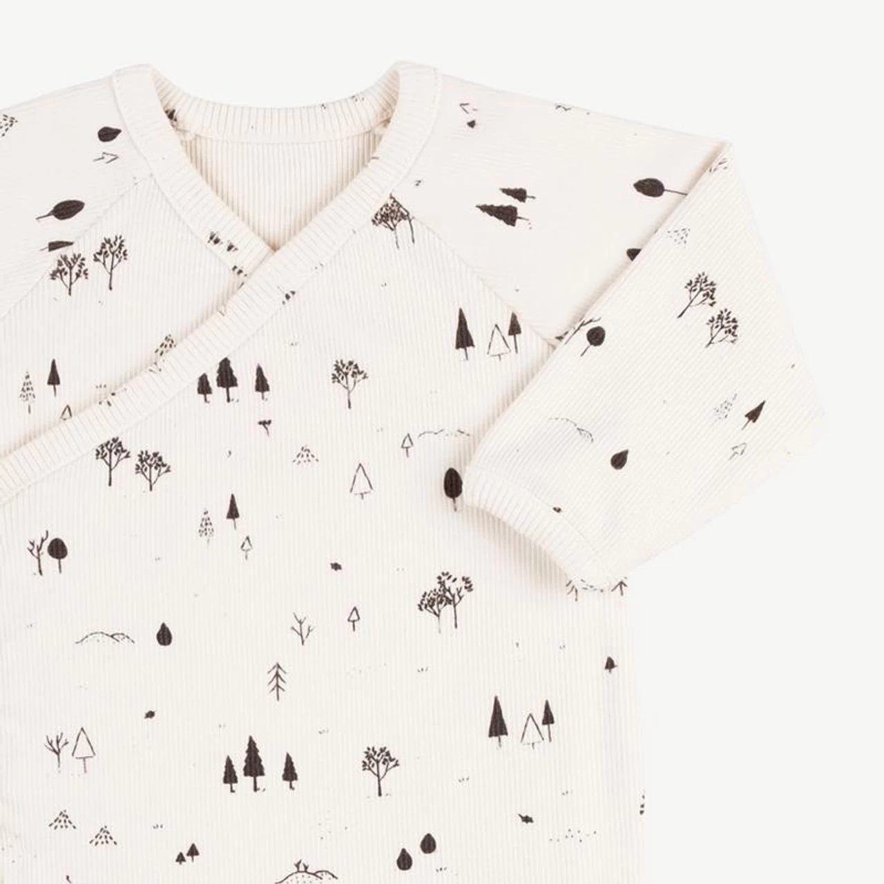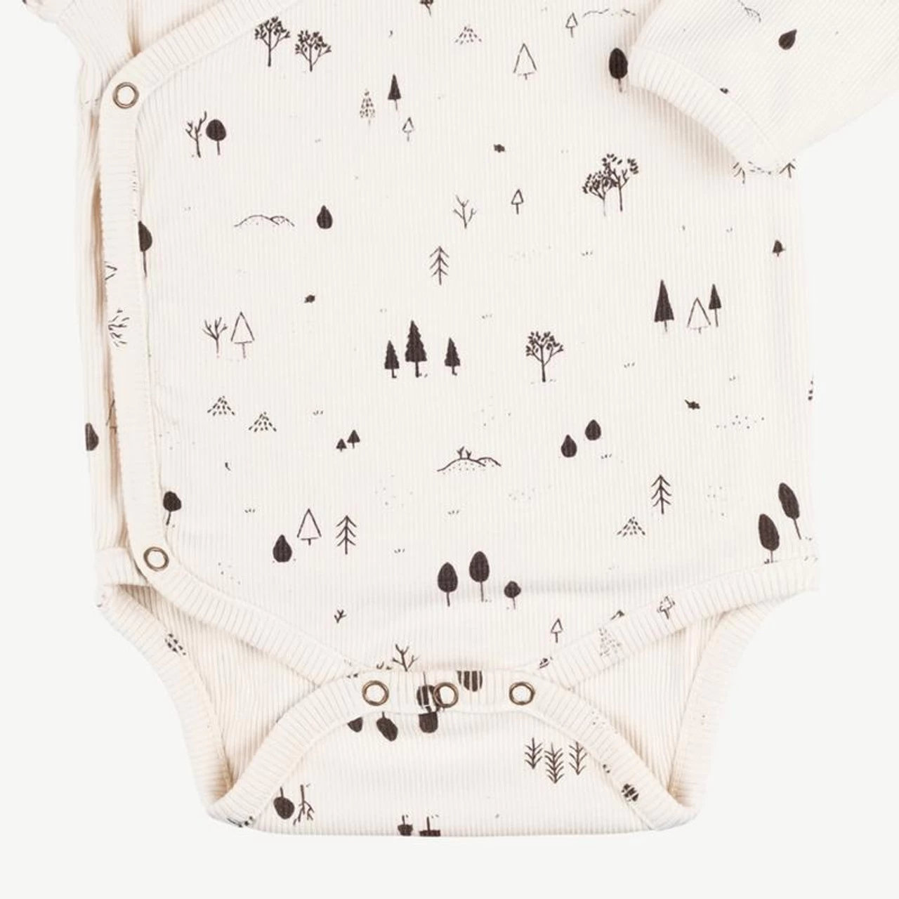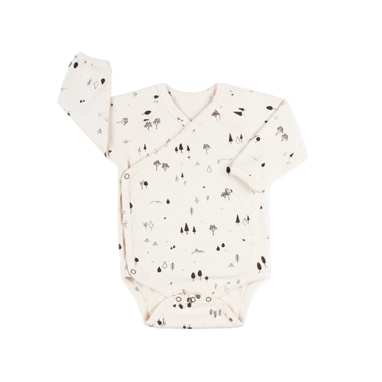 Rib fabric onesies with kimono front opening. Snap buttons of easy wearing. Garment-dyed for a distressed look!
