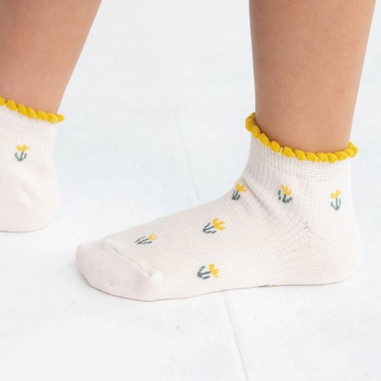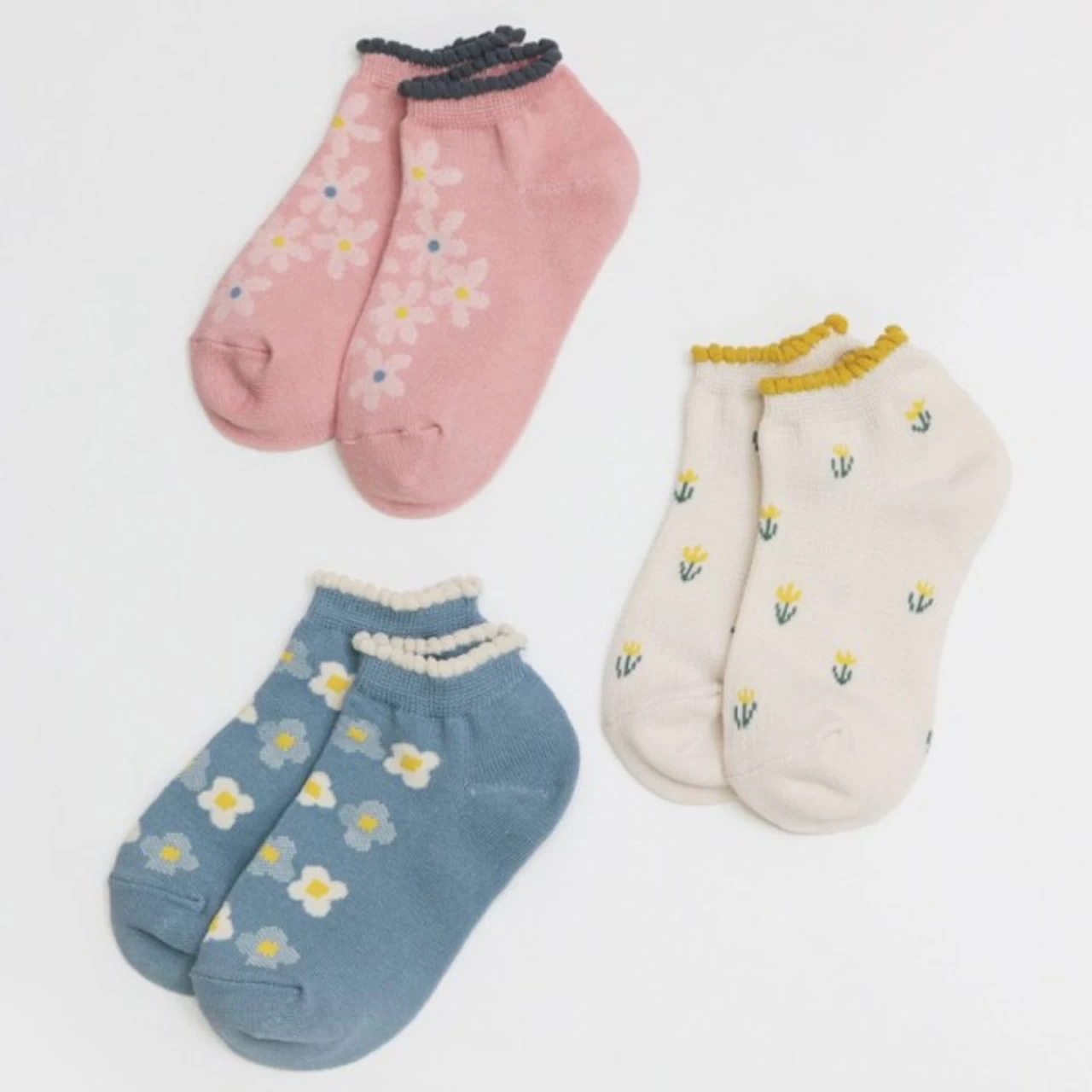 With adorable flower designs ◎ The small frills on the cuffs add a girly touch. The gentle color combination makes it perfect for everyday wear ♪
