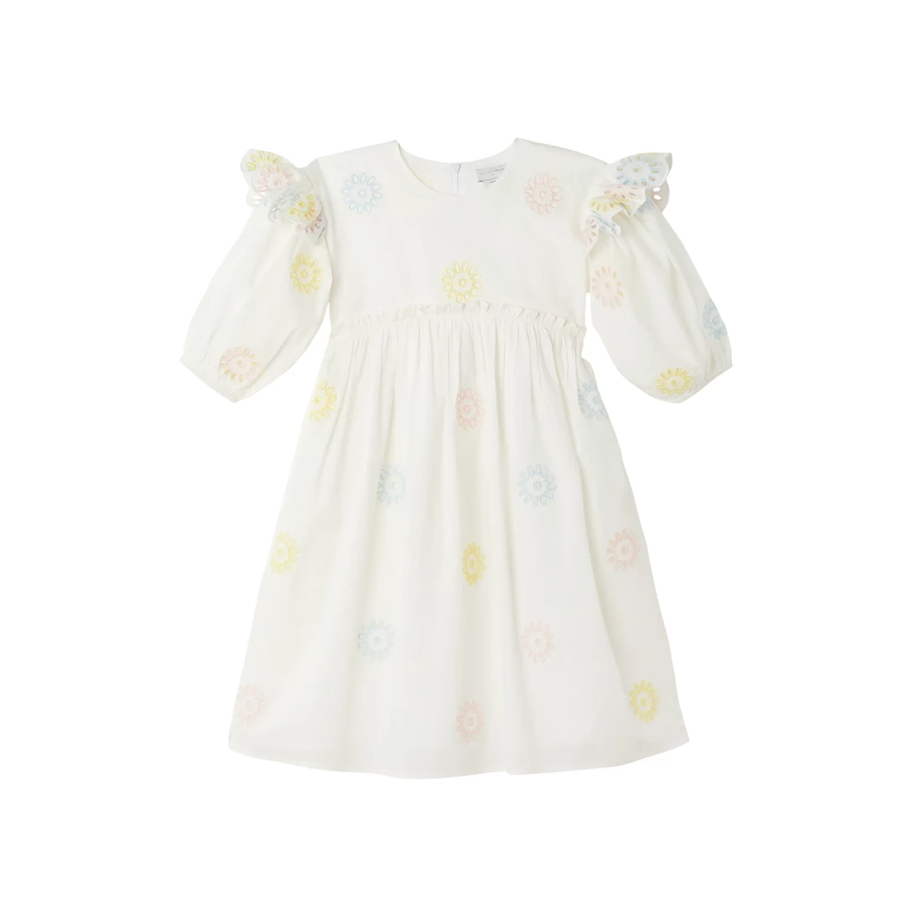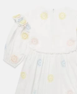 A celebration of love, friendship and Mother Earth, this cotton voile dress from Stella McCartney Kids lets girls embrace their inner flower child. The dress is elevated with pastel flower crochet details all over, plus girlish frill trims and puff sleeves.