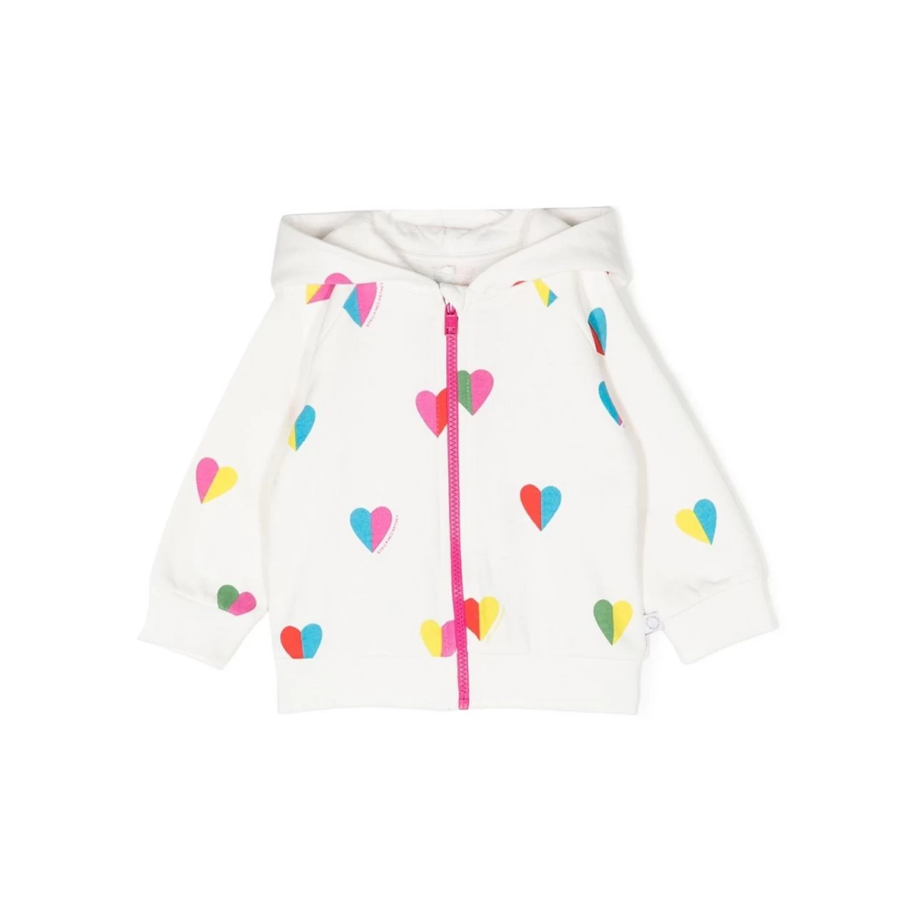 Get this perfect addition to your little princess’ wardrobe, a super-soft hooded sweatshirt from Stella McCartney. The zipper closure jacket with drawstring hoodie has mini hearts printed all over.
